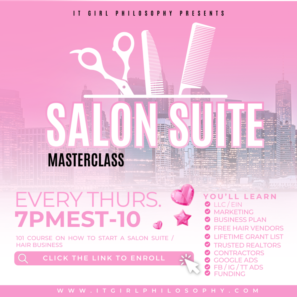 Don't miss this opportunity to turn your passion for beauty into a profitable business. Enroll in our Salon Suite Master Class today and take the first step towards building your own empire!